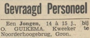 - Gerrit GUIKEMA, geboren Noorderhoogebrug 13-01-1909, overleden 19-10-2002. Arbeider.