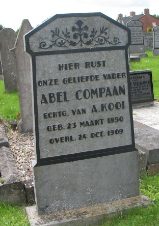 Abel COMPAAN, geboren Warffum 23-03-1850, overleden Kantens 24-10-1909, zoon van Derk Abels COMPAAN en Dietje Luitjes BORKHUIS.
