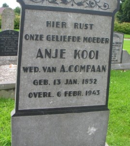 Diederika en Pieter zijn begraven in Kantens. - Maaike COMPAAN, geboren Kantens 20-08-1882, overleden Middelstum 07-06-1951. Huishoudster.