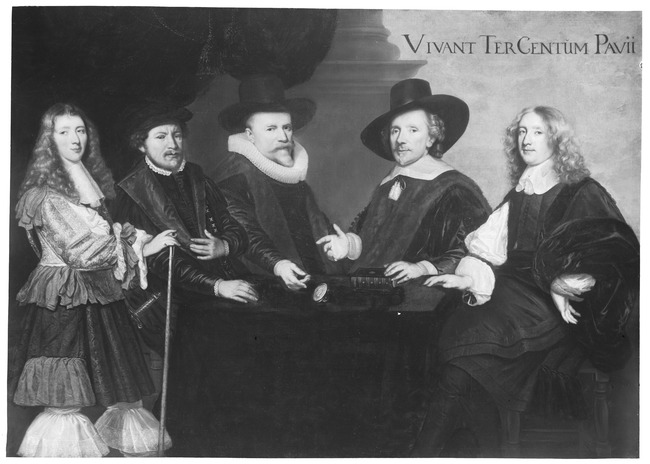 V.l.n.r. Johan Pauw (1645-1708, zoon van Diederik Pauw), Adriaan Pauw (1516-1578), Reinier Pauw (1564-1636), Reinier Pauw (1591-1676) en Diederik Pauw (1618-1688)