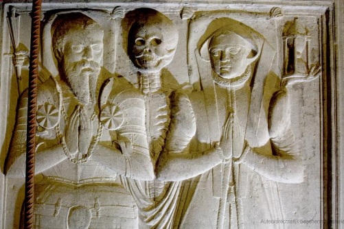 Bovenstuk van het grafsteen, oorspronkelijk in de kerk Wetsinge, nu in het Groninger Museum.