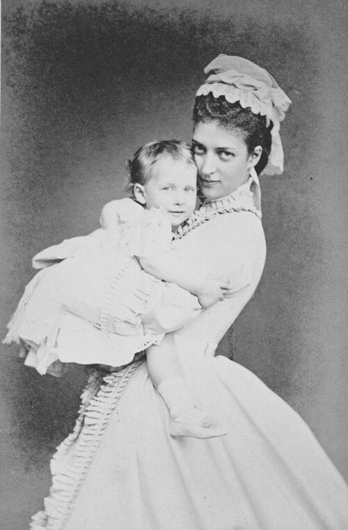 Alexandra Carolina Marie Charlotte Louise Julia van Sleeswijk-Holstein-Sonderburg-Glücksburg met dochter Maud
