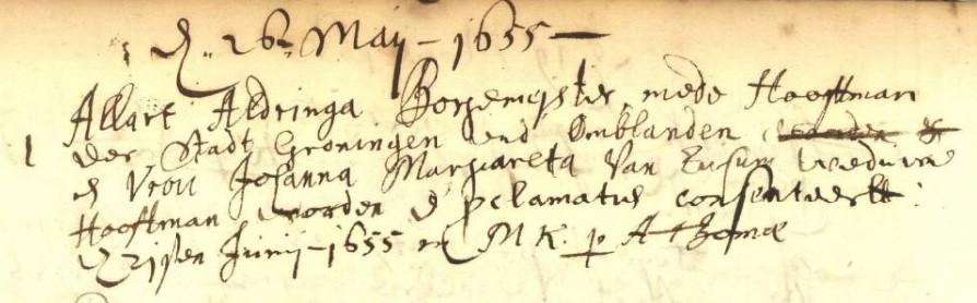huwelijk van Allart Aldringa en Johanna Margareta van Ewsum