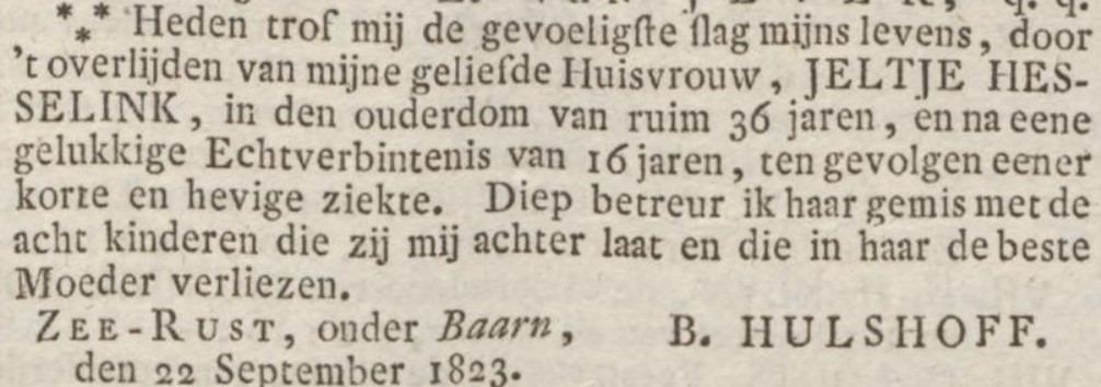 Gezinskaart van Barend Hulshoff (1781-1849)