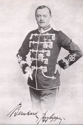 Bernhard Kasimir Friedrich Gustav Heinrich Wilhelm Eduard van LIPPE-BIESTERFELD, geboren Oberkassel, bij Bonn (Duitsland) 26-08-1872, overleden München (Duitsland) 19-06-1934, zoon van Ernst Kasimir Friedrich Karl Eberhard van LIPPE-BIESTERFELD en Karoline Friederike Cäcilie Klothilde van WARTENSLEBEN.