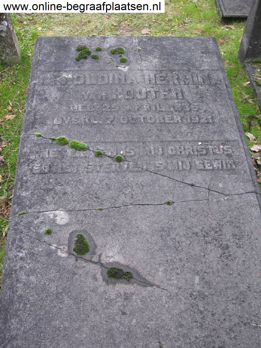 1. Arnoldina Hermina van HOUTEN, geboren Amsterdam 29-04-1836, overleden Weesp 07-10-1921.