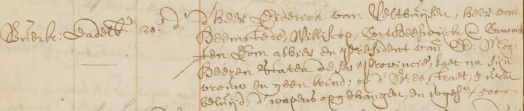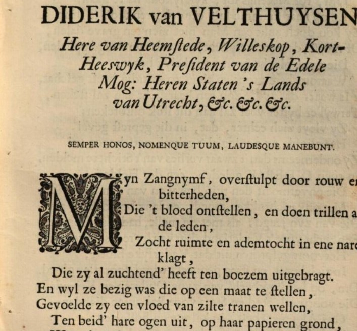 Diederik Theodorus van VELTHUIJSEN, gedoopt (als Dirc) Utrecht 18-12-1651, overleden Utrecht 20-07-1716, zoon van Frederick van VELDHUIJSEN en Johanna van STRATEN.
