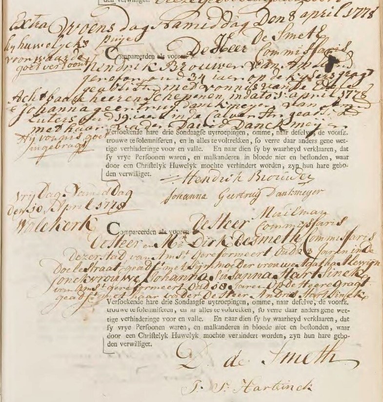 Dirk is ondertrouwd Amsterdam 10-04-1778 met Johanna Susanna HARTSINCK, geboren Wageningen 05-11-1759, overleden Brussel (België) 03-04-1830, dochter van Andries HARTSINCK en Johanna Cornelia de BAS.