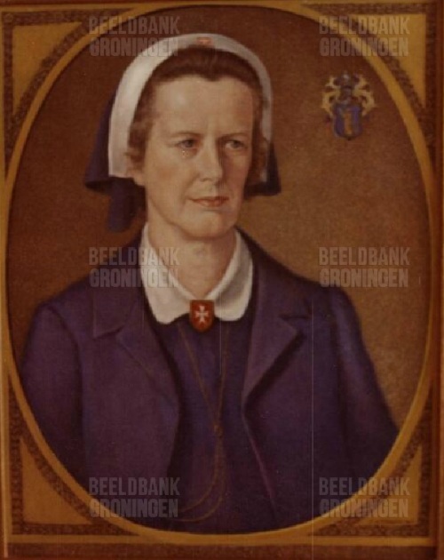 Jeanne Agatha Maria als Maltheser zuster rond 1973. (geschilderd door Anco Wigboldus)