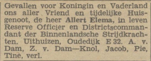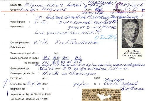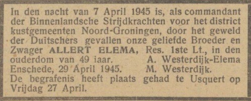 3. Allert ELEMA, geboren Usquert 12-11-1895, gefusilleerd Anloo 08-04-1945.