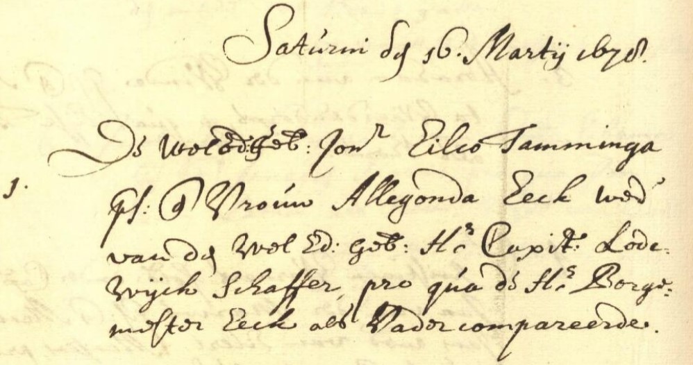 Eilco TAMMINGA, geboren 1645, overleden Groningen 26-01-1721, zoon van Eger TAMMINGA en Eilke CLANT