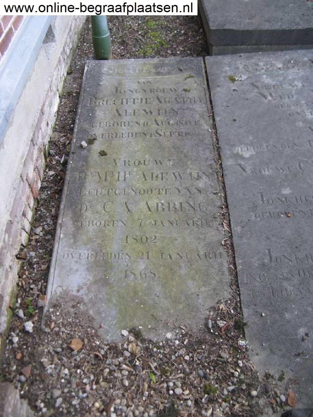 - Bregtje Agatha ALEWIJN, geboren Hoorn 11-08-1804, overleden Hoorn 01-09-1856.