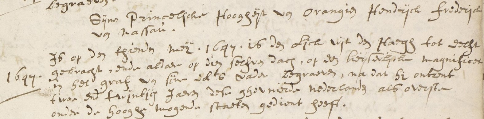 Begraafakte Frederik Hendrik van Oranje-Nassau