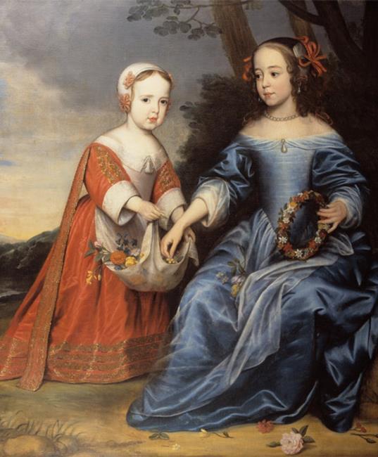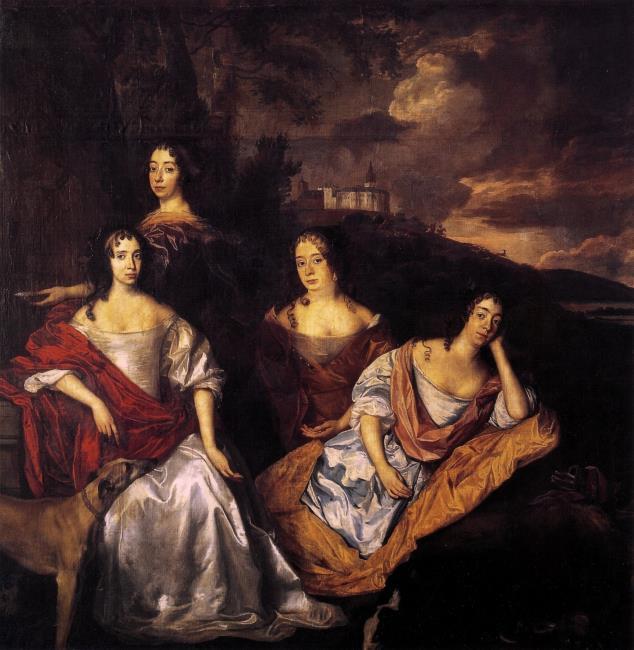 V.l.n.r.: de dochters Louise Henriette, Maria, Henriëtte Catharina en Albertine Agnes in 1666. In de achtergrond het Slot van Kleef (Schwanenburg), waar Maria in 1666 is getrouwd.