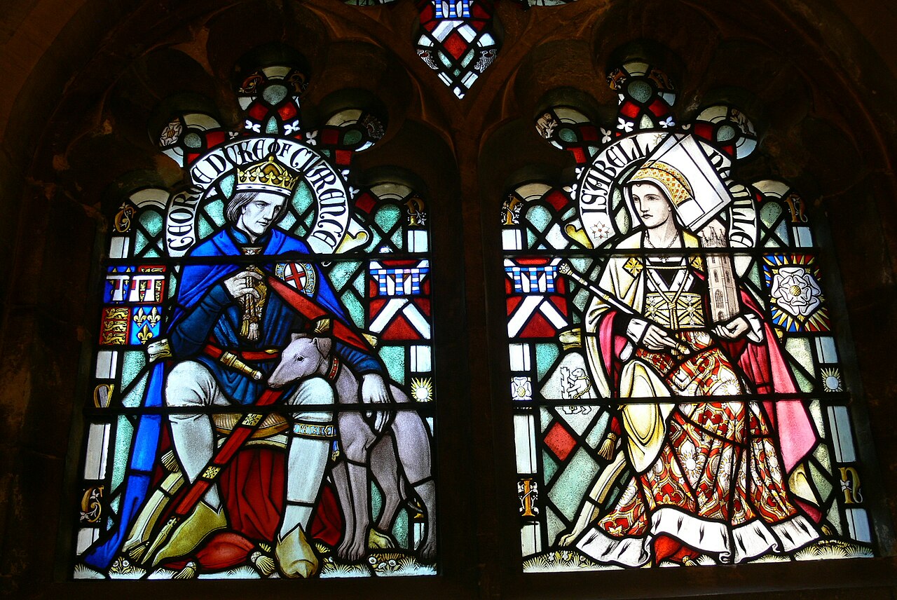 George is getrouwd Calais (Frankrijk) 11-07-1469 met Isabel NEVILLE, geboren Warwick Castle (Engeland) 05-09-1451, overleden 22-12-1476, dochter van Richard NEVILLE (graaf van Warwick) en Anne BEAUCHAMP.