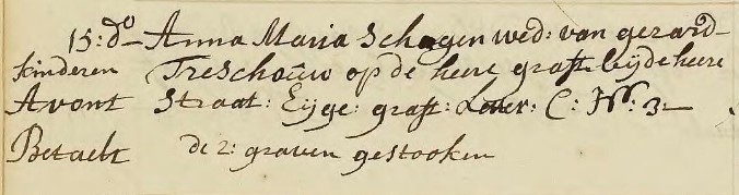 Gerard TRESCHOUW, geboren 1665, overleden 23-05-1719, zoon van Gerard TERSCHOUW en Anna van MARSELIS.