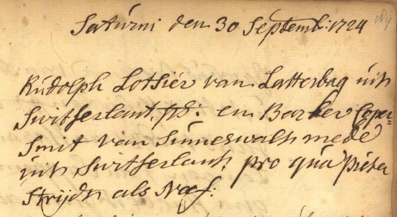 Hans Rudolf Abrahams LEUTSCHER, ook Rudolph LOTSIER, gedoopt Letterbach (Zwitserland) 26-10-1699, overleden en begraven Groningen 25-06-1761, zoon van Abraham Hansen LÖTSCHER en Madlena SCHMIDT.