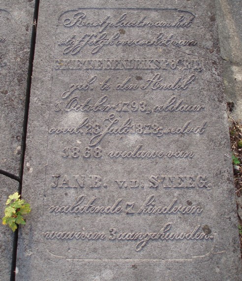 Jan Benders van der STEEG, geboren Grijpskerk 25-12-1787, overleden Den Andel 24-11-1868, zoon van Geertje van der STEEG.