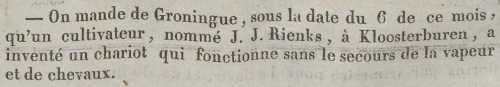Jan Jans en zijn broer Aukee Jans waren tot 1853 huurboer op de plaats van weduwe J.B.Grave-Dumonceau onder Kloosterburen. Jan Jans had daar in 1840 een uitvinding gedaan van een vehikel. Hij was toen 13 jaar.