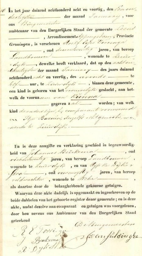 Opvallend is, dat op Kunna’s grafsteen in Zuurdijk staat vermeld dat zij op 23 januari 1848 is geboren.