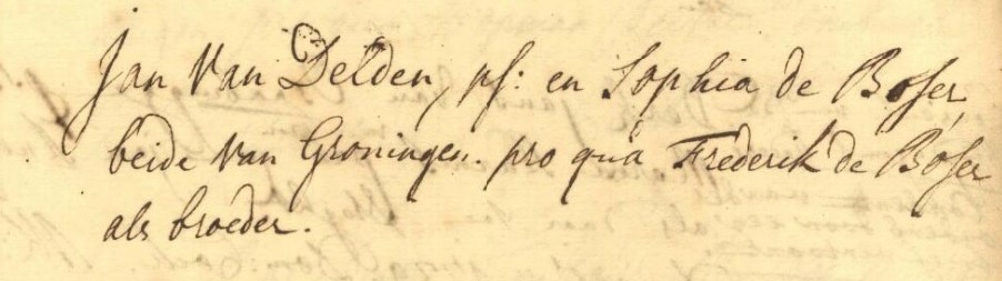 Jan van DELDEN, geboren Groningen ca. 1700, overleden Cremersrijpe Groningen 19-01-1770, zoon van Izaak Berends van DELDEN en Sara de BOOSER.