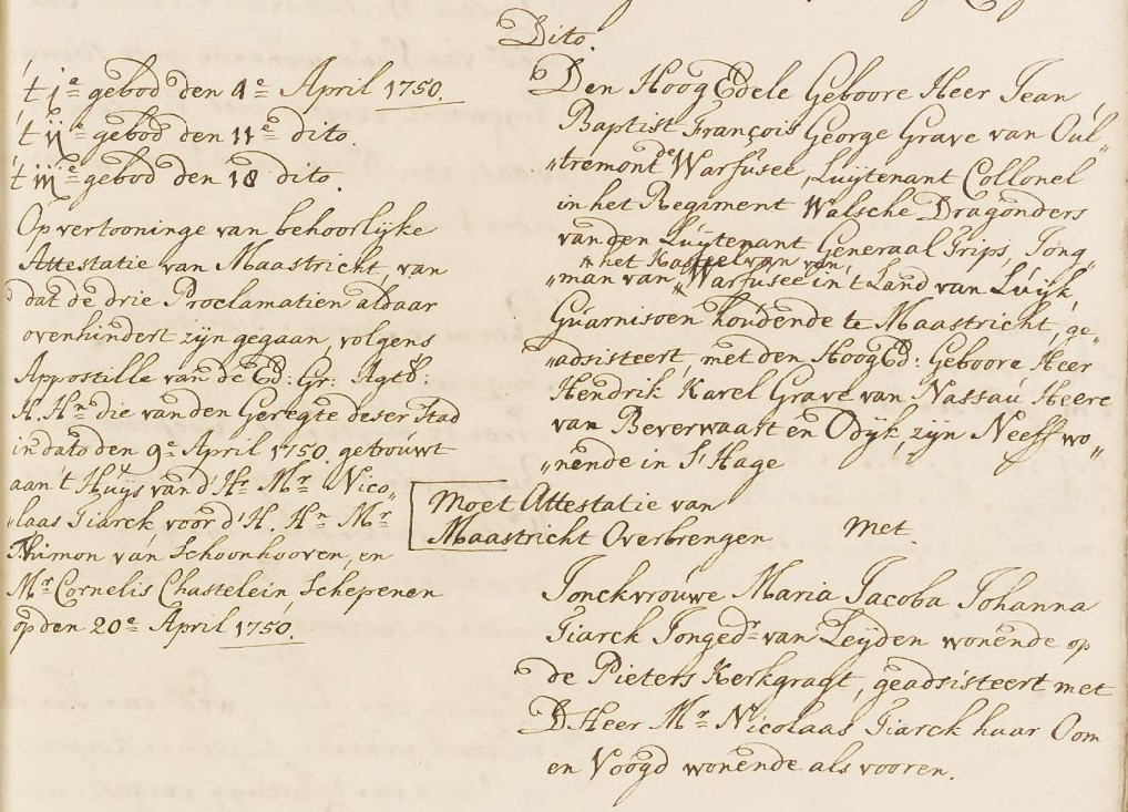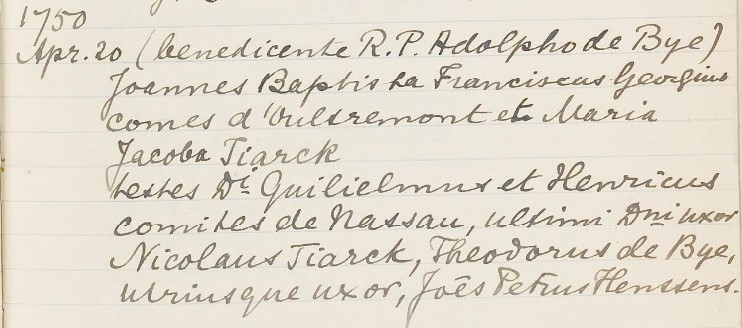 huwelijk van Joannes Baptista d’Oultremont de Wégimont en Maria Jacoba Johanna Tiarck