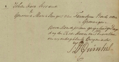 huwelijk Johan Hora Siccama en Genoveva Maria Rengers