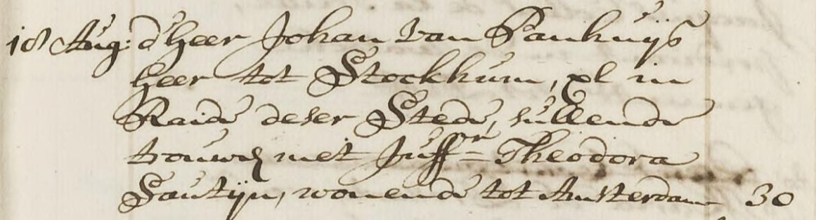 Johan van PANHUIJS, geboren Leiden 22-09-1662, overleden Leiden 03-09-1730, zoon van Johan van PANHUIJS en Cornelia van HOOGEVEEN.