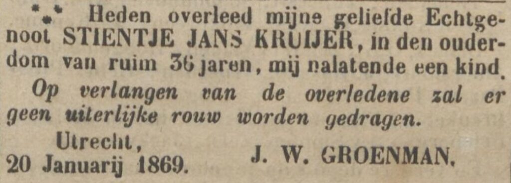 Johannes Wilhelmus GROENMAN, gedoopt Niezijl 03-10-1802, overleden Groningen 27-02-1877, zoon van Wilhelmus Johannes GROENMAN en Titia de COCK.