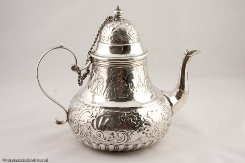 Zilveren theepot (1755-56), gemaakt door Lucas van Giffen