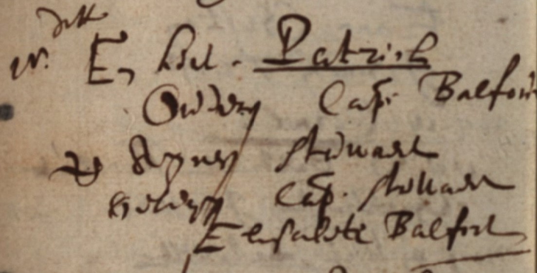 Patrick BALFOUR, geboren Breda 18-09-1641, overleden Fleurus (Henegouwen) 01-07-1690, zoon van James Michael BALFOUR en Agnes STUART.