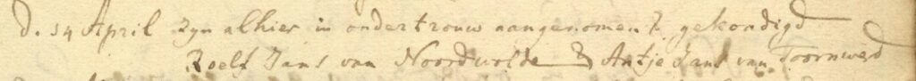 Roelf is ondertrouwd Kerkelijke Gemeente Noordwolde 14-04-1798 en getrouwd Middelstum 27-04-1798 met Antje Jans SIKKEMA, geboren Toornwerd (Middelstum) 18-05-1766, gedoopt Middelstum 25-05-1766 (?), overleden Noordwolde 09-12-1826, dochter van Jan Berends en Anje Reenders.