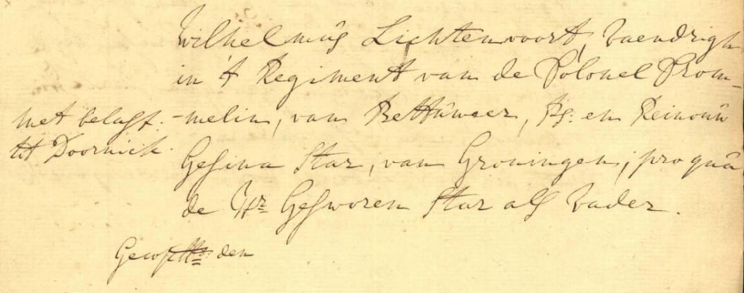 Wilhelmus LICHTENVOORT, geboren Doornik (België) 1719, overleden en begraven Groningen 27-05-1799, zoon van LICHTENVOORT en Maria LEIJHAMER.