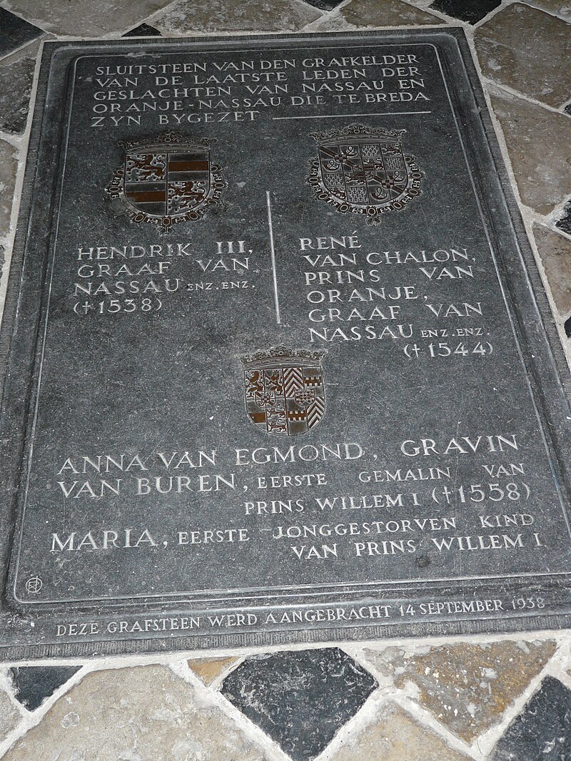 - Maria van ORANJE, geboren Breda 09-12-1553, gedoopt 12-12-1553, overleden kort na 07-12-1554. Maria is begraven in de Grote of Onze-Lieve-Vrouwekerk in Breda.